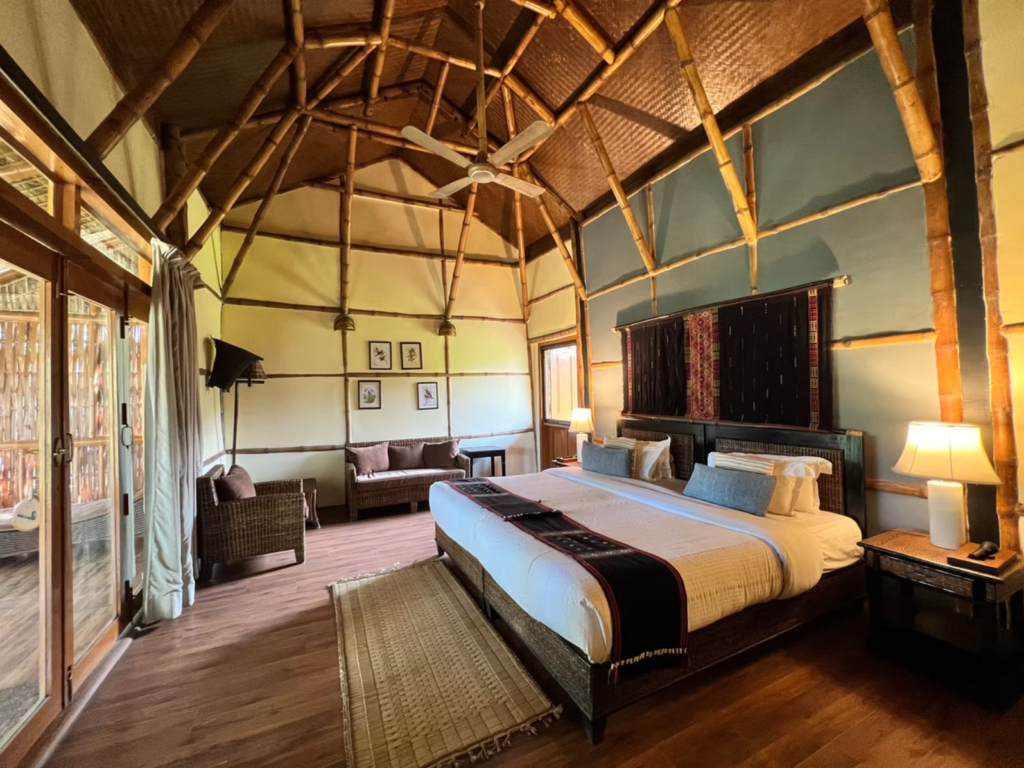 a serene eco-lodge nestled along the banks of the Diphlu River near Kaziranga National Park. Surrounded by lush greenery, it offers comfortable accommodations, nature-inspired dining, and easy access to wildlife safaris